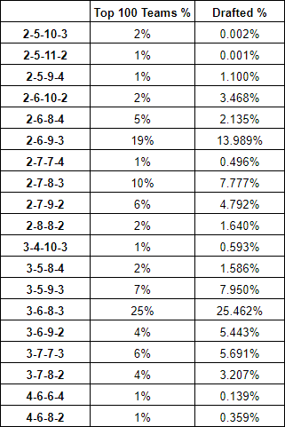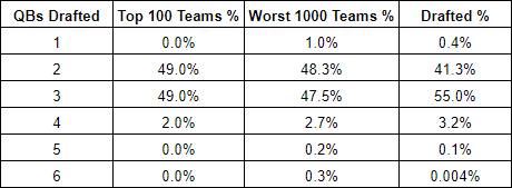 - 6% of teams drafted two or less Quarterbacks and two or less Tight Ends