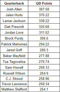 Dak plus Purdy was the 22nd highest possible two quarterback combo, a whopping 35.96 points more.