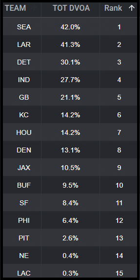 The Rams are firing on all cylinders. Their offense is electric, Stafford is playing at an elite level, and the defense keeps creating momentum-shifting plays. Puka continues to dominate with elite volume and separation, while Kyren’s workload makes him one of the most valuable backs in the playoffs – No Update.